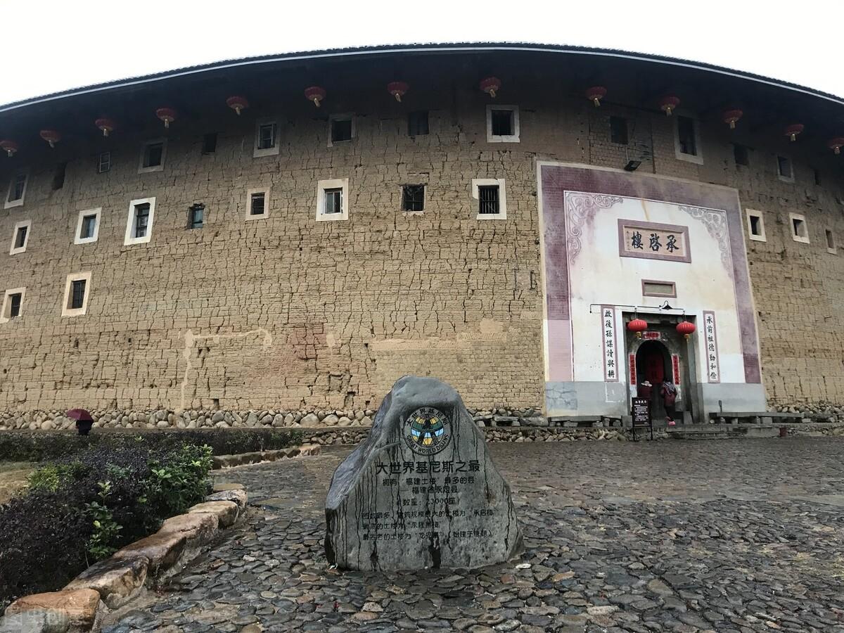 上图是承启楼,被誉为“土楼王”,是 福建土楼中规模最大的圆形土楼,也是知名度最高的土楼,全国重点文物保护单位,2010年4月入选上海吉尼斯世界纪录。始建于明崇祯元年一崇祯十五年,而后依次建造第二、三、四环,清康熙四十八年(1709年)才全面落成。承启楼共有402开间,最多时居住了800多人。承启楼还有流传比较广的顺口溜:“高四层,内四圈,上上下下四百间;圆套圆,圈套圈,历尽沧桑数百年;楼中楼,天外天,住上人口近一千;阴阳八卦布其间,天地人楼合为先”。