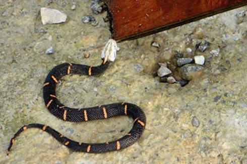 具管牙类毒蛇,管牙较短小,无颊窝。毒性是神经毒,在人体内会引致痛苦、肿胀、高血压、反胃、腹痛、困倦、四肢麻痹等。