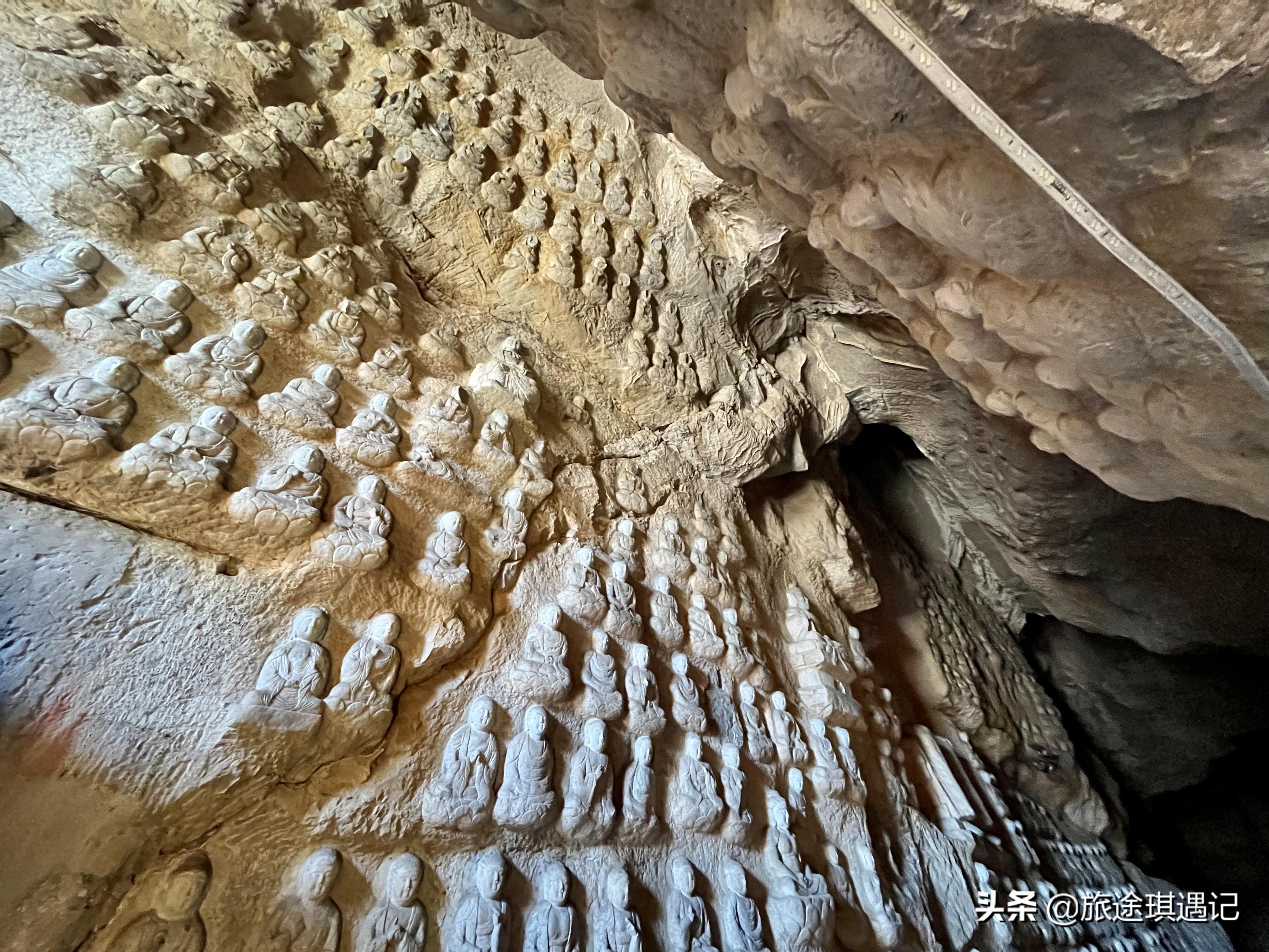 根据我查到的资料显示,这个千佛洞是开凿于北齐年间的,也就是说确实是在南北朝时期就有了这个洞,而我们在洞内能看到一处宋代石刻,上面提到有几个人从山下步行到这个山洞,至于有没有佛像并没有提到。除了这处宋代石刻之外,还有许多嘉靖年间留下的石刻,我觉得大概就是从南北朝时期开始,这里一直在陆陆续续地进行佛像的雕刻,到嘉靖时期达到了一个顶峰。