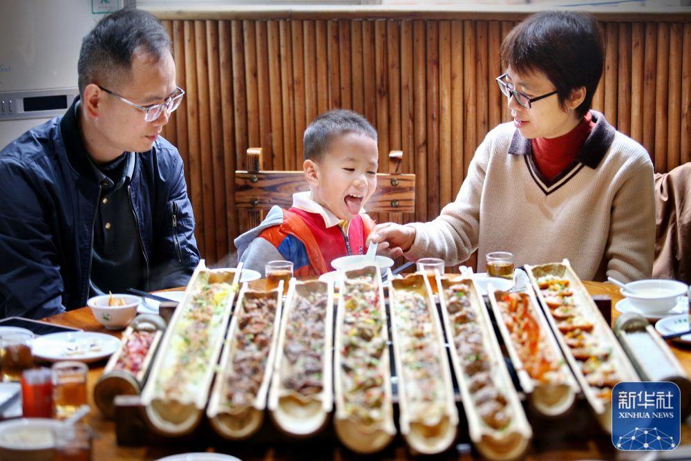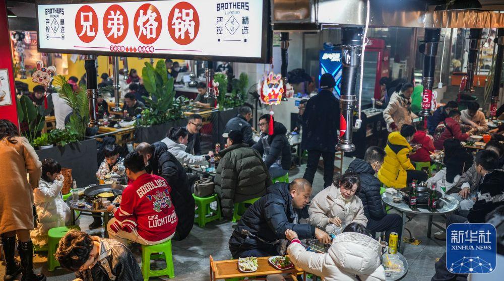 1月24日,市民在贵州省安顺市西秀区一家餐厅享用美食。新华社发(陈熙摄)